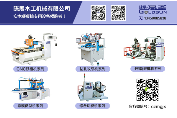 在过去的10年,陈展木工机械(前身“高圣”木工机械)一直专注于实木餐桌椅制造机械设备领域。本司注重研发技术,坚持自主创新,紧抓客户的需求,推动着该行业的自动化和数控化的潮流,目前获7项国家认证的专利和自主研发的17台机械设备。