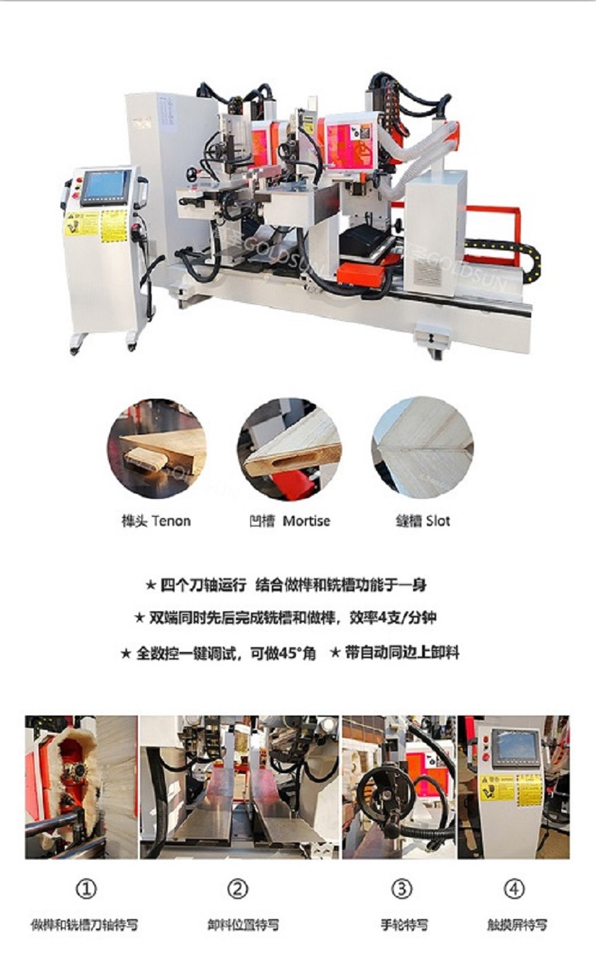功能介绍:为餐桌椅脚、床、门框等家具制造加工所需的铣槽和做榫功能。