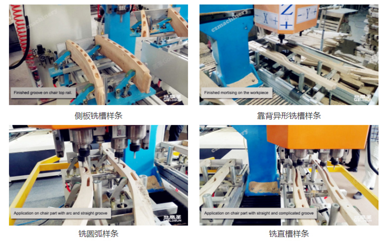 功能:用于餐桌椅的铣直槽、圆弧斜槽、钻孔、扩孔功能。